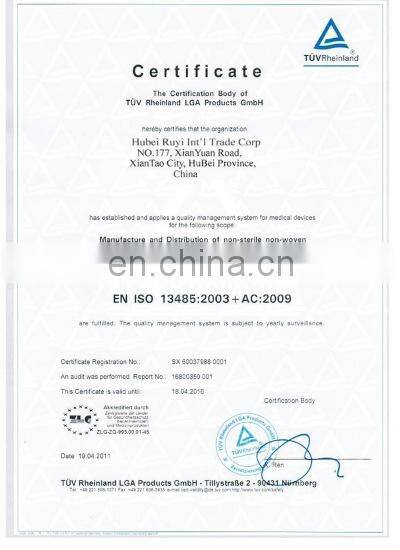 Hubei Ruyi Int'l Trade Corp. is one of the key supplier in Wuhan (Hubei,China). Our company is specializing in manufacturing and exporting disposable non-woven medical,sanitation and safety PPE products as well as PDLC smart window relative products..